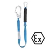 Elemento de amarre de doble ramal con cinta antiestática con absorbedor como elemento anticaídas para trabajos en altura y con un entorno de atmósferas explosivas.