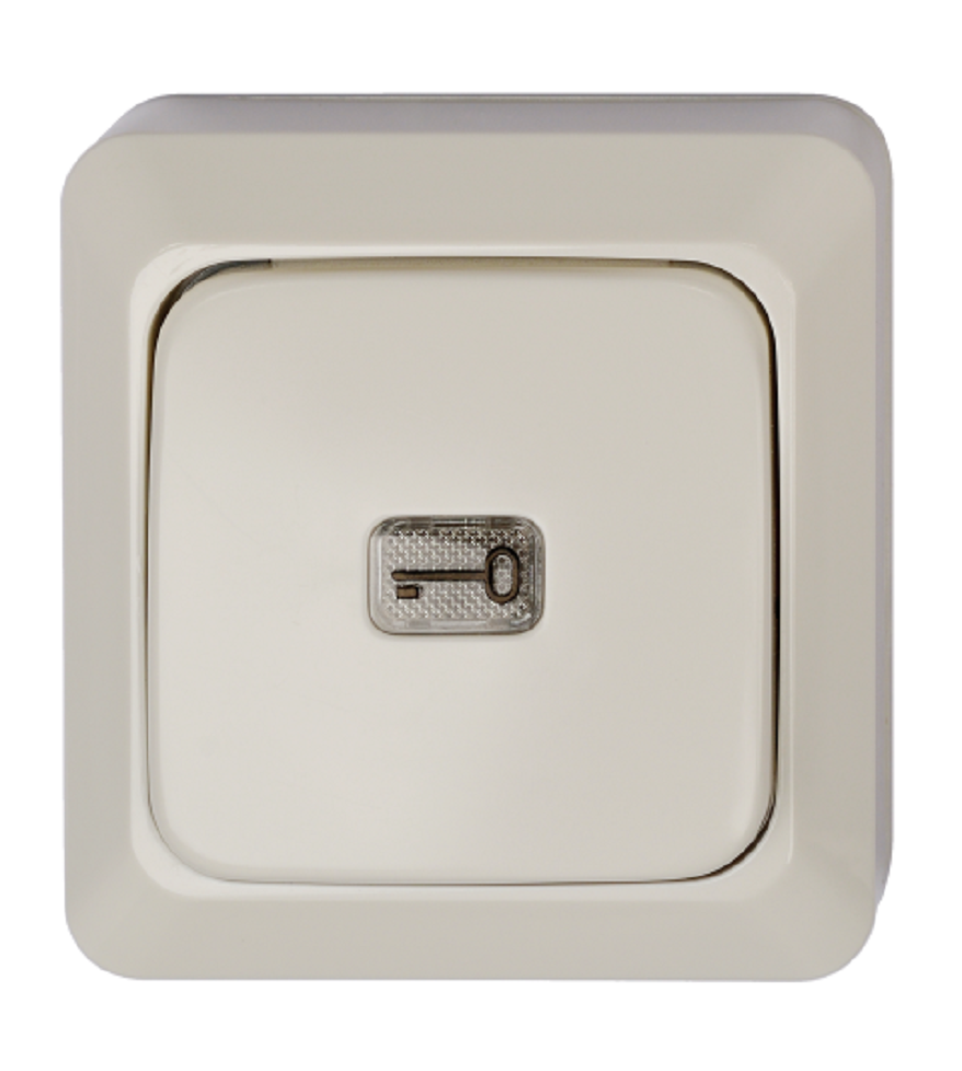 Pulsador de petición de salida, montaje en superficie. Dimensiones: 76x72x32mm. Peso: 25gr.