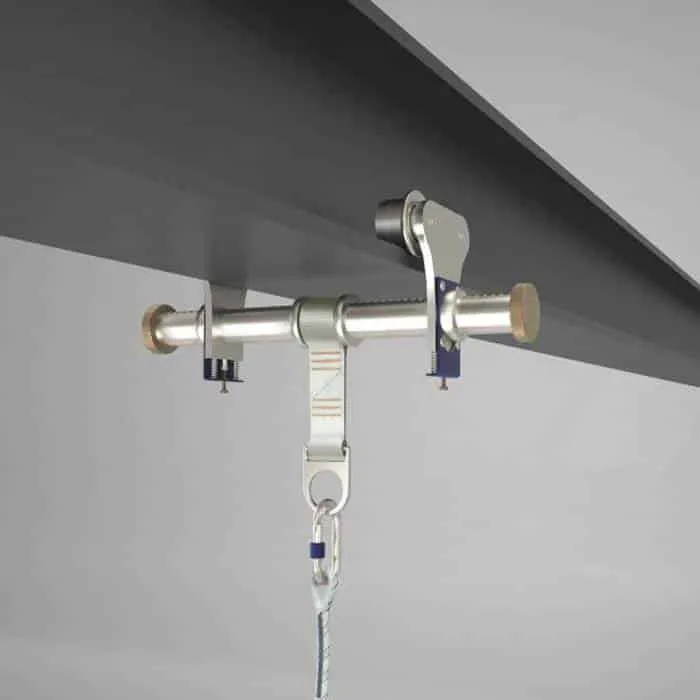 - Anclaje muy ligero y cómodo de transportar para vigas tipo I de 76-255 mm de ancho y de hasta 23 mm de grosor.