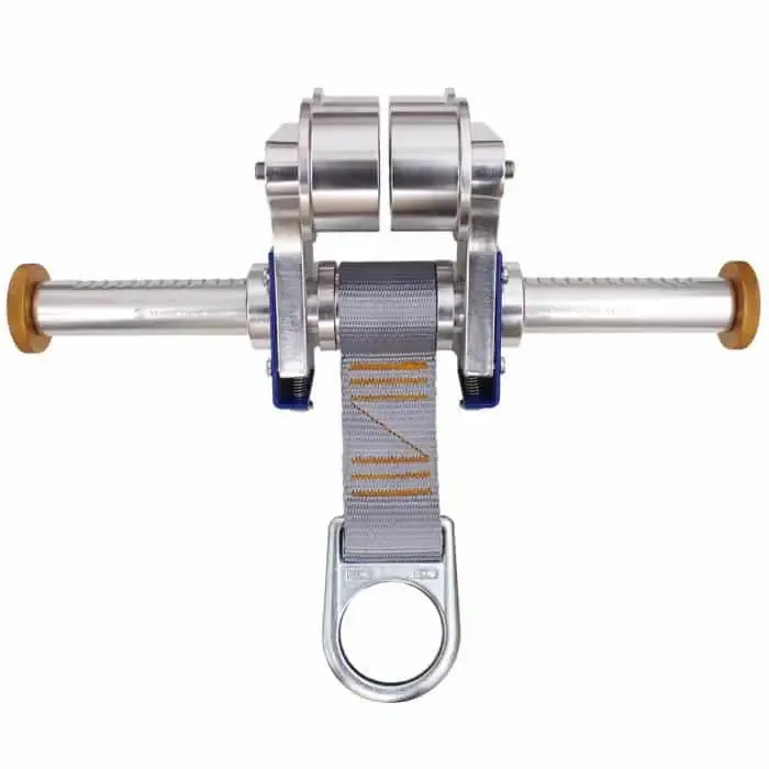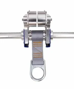 El PRO12 es un dispositivo de anclaje deslizante que se instala en vigas y con él conectamos un sistema anticaídas como puede ser un dispositivo retráctil o un absorbedor de energía que lo conectamos con un arnés anticaídas.