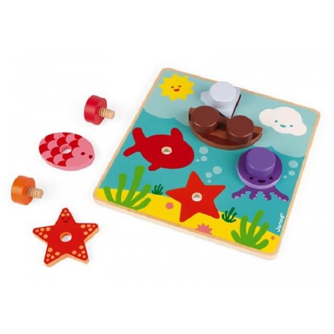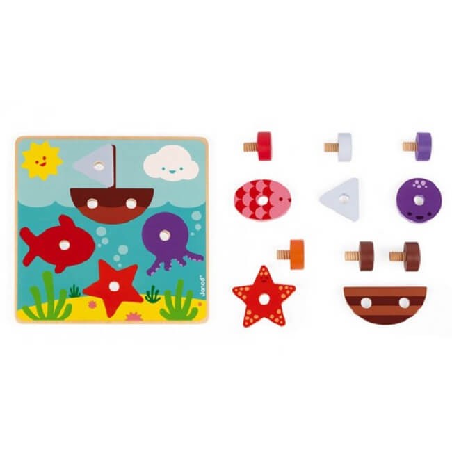 Un juego de madera fácil de manejar por los niños gracias al gran tamaño de los tornillos.
