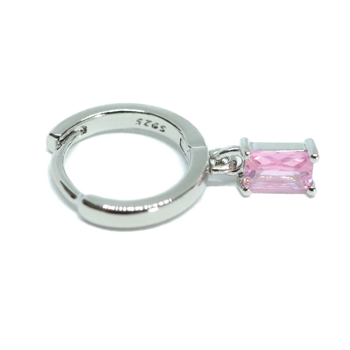 Este aro de plata está adornado con una hermosa zirconia rosa, añadiendo un toque de delicadeza y sofisticación a cualquier conjunto. Ideal para quienes desean complementar su estilo con una joya que resalte sutilmente.