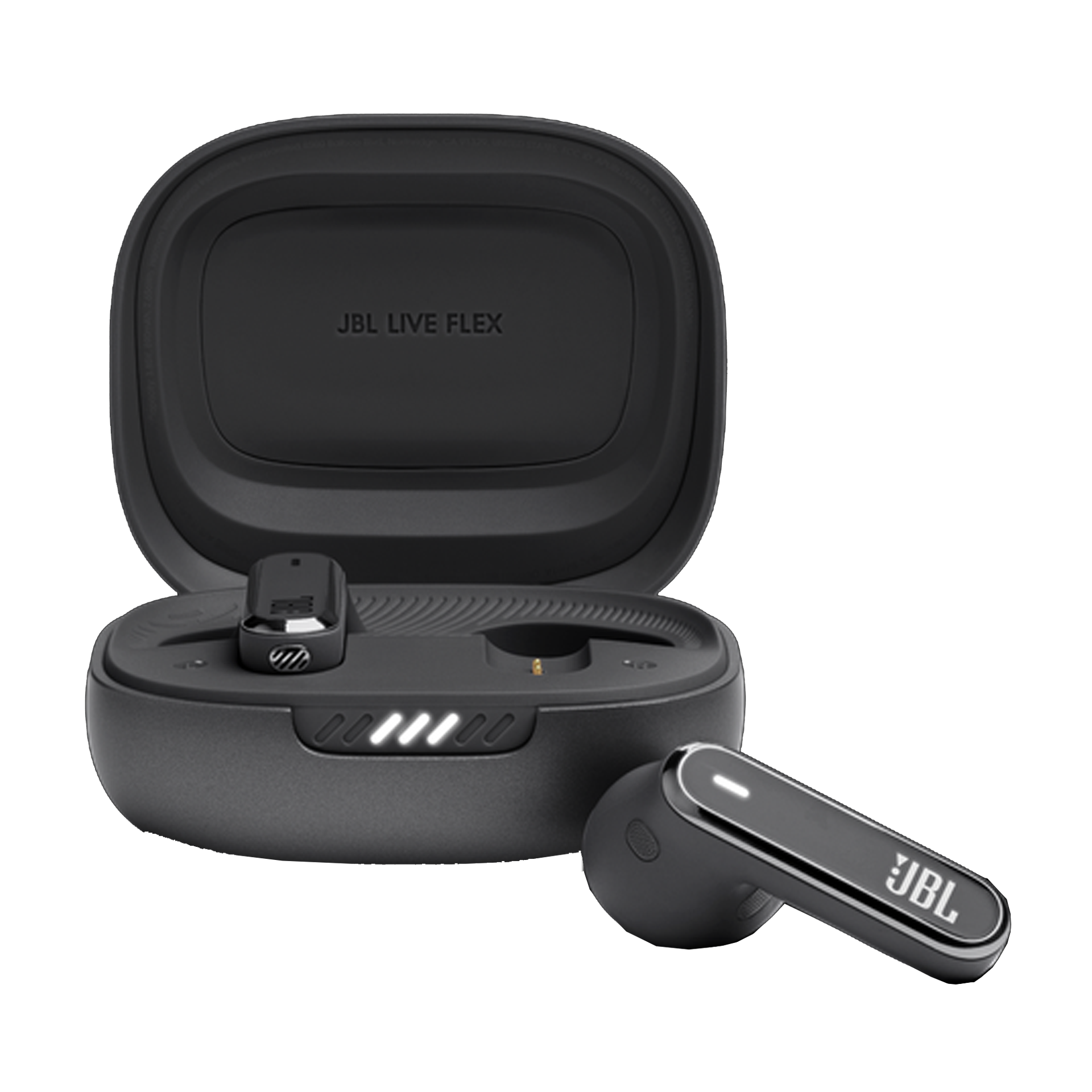 -JBL Live Flex ofrece hasta 8 horas de potencia en los auriculares y otras 32 en el estuche*. Y si tu compañero de audio todo el día necesita un encendido, la carga inalámbrica compatible con Qi ofrece 4 horas adicionales en solo 15 minutos. *con ANC desactivado (24 con ANC activado).