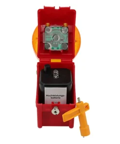 La baliza luminosa 360º Schake tiene la principal ventaja respecto a otras balizas luminosas en que su lámpara es totalmente redonda, ofreciendo luminosidad en todos sus lados así como sólo necesita una batería 4R25 6V para su funcionamiento.