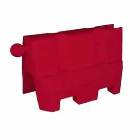 - Las barreras New Jersey de plástico tienen una capacidad máxima de llenado en interior de 55 litros, con un cómodo desagüe situado en un extremo de la barrera.