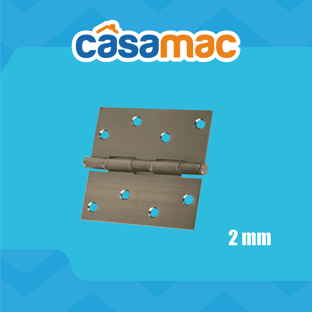 Bisagra de diseño de mortaja completa con cinco articulaciones y esquinas cuadradas. Cuenta con tornillos de acero inoxidable. Uso en puertas interiores y exteriores.
