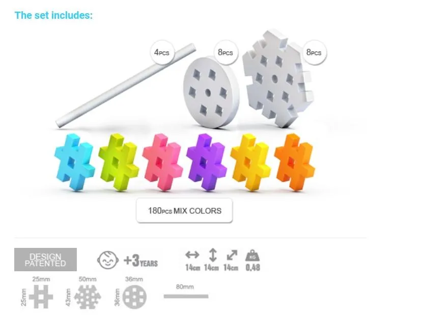 Los bloques Meli no tienen enganches, por lo que las/los pequeñas/os constructoras/es pueden seguir sus propios patrones sin poner límites a la imaginación.