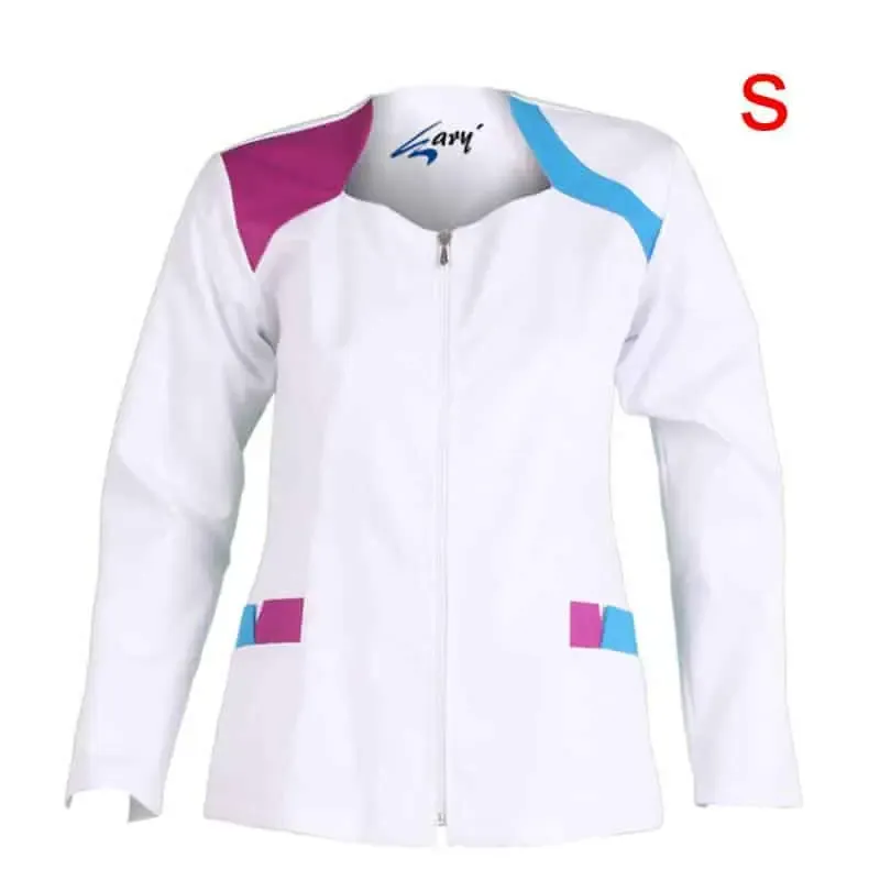 Blusa de señora de manga larga y cremallera, pensada para trabajadores del sector sanitario y servicios.