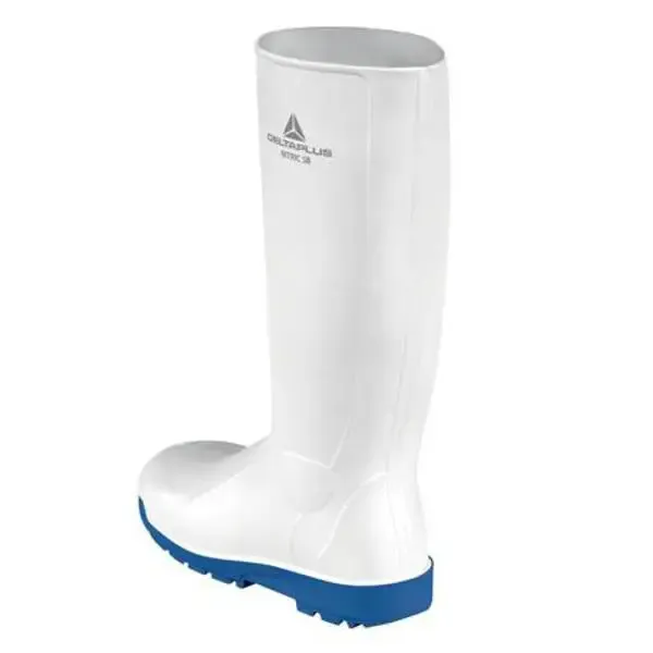 Esta bota esta fabricada de color blanco, ideal para aquellos centros de trabajo en los que la higiene y seguridad sean una norma importante. Por otro lado, una de las características de esta bota de agua es que está fabricada con una suela antideslizante para evitar resbalones en lugares con suelos resbaladizos, así como una protección en la puntera para proteger el pie de golpes y caída de objetos que puedan lesionar al trabajador.