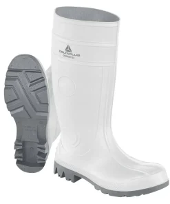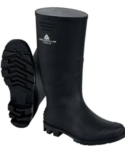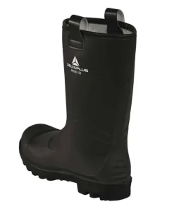 Botas de goma de seguridad en caña alta para trabajos con lluvia, humedad, barro u otras circunstancias en las que el trabajador necesite un calzado de seguridad que proteja del agua y mantenga los pies del trabajador secos.
