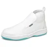 Botas de seguridad blancas con tapeta y velcro para trabajar en el sector de la alimentación, hostelería o salas blancas y que no se estropeen los cordones, ni entren líquidos por el empeine.