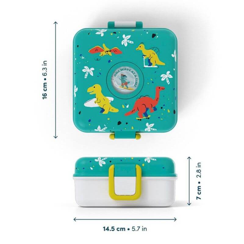 ¡La lunch box niños Snacky está llena de sorpresas! Debajo de la tapa se esconden un tenedor y una cuchara para que puedas comer como un adulto. Incluso hay una cajita extraíble con tapa, ¡para que puedas separar la comida o añadir pequeños extras!