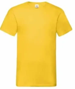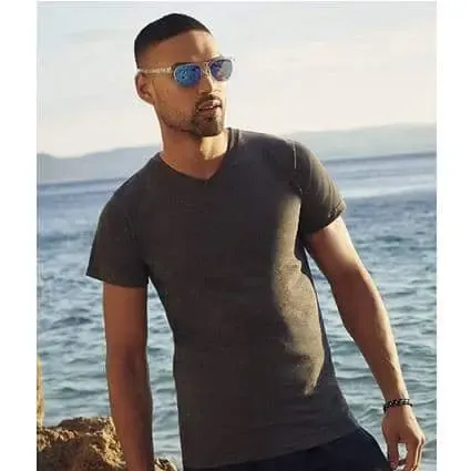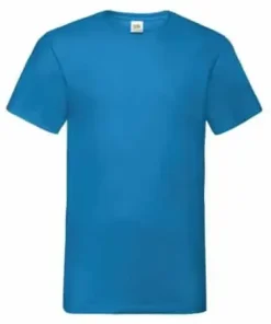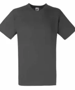 Camiseta cuello pico y manga corta de la marca Fruit of the Loom que ofrece un mayor espacio en la zona del cuello para quienes les sea incómodo un cuello redondo.
