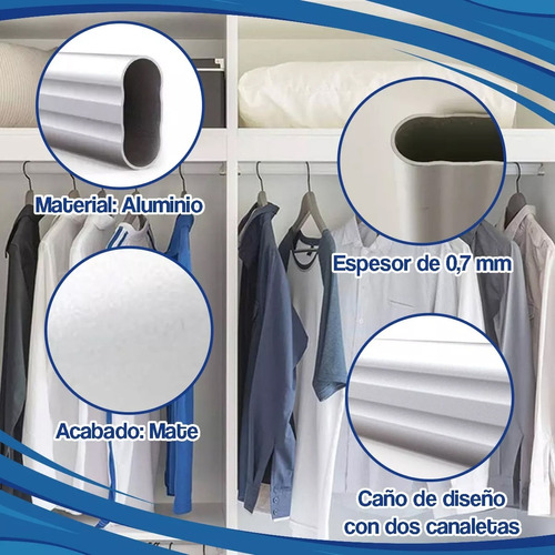 *** Caño Oval Aluminio Mate 3 Mts Mueble Placards Grupo Euro Cima M ***