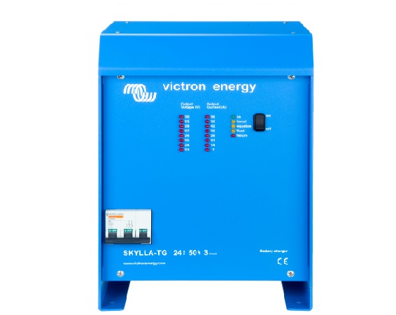 Cargadores perfectos para todo tipo de baterías Los cargadores Skylla TG son ligeros y compactos gracias a la tecnología de alta frecuencia. La tensión de carga se puede ajustar con precisión para adaptarse a todos los tipos de baterías, abiertas o selladas. Las baterías selladas sin mantenimiento requieren una carga especialmente precisa para una buena duración de vida. Cualquier sobrevoltaje provocaría un gaseo excesivo seguido de un desecamiento y de un mal funcionamiento prematuro. Carga regulada en 3 etapas Las tres etapas de carga de los cargadores Skylla TG son controladas con precisión por microprocesador. La curva de carga IUoUo garantiza la carga más rápida y segura para todos los tipos de baterías. La duración de absorción es ajustable mediante un interruptor. La función “Intelligent Startup” evita iniciar un ciclo de carga completo en una batería ya cargada. Skylla TG 24 50 Skylla TG 24 50 3 phase Skylla TG 24 100 Utilizables como fuente de alimentación Su voltaje de salida perfectamente estabilizado permite utilizar los cargadores Skylla TG como fuente de alimentación, sin necesitar la utilización de baterías. Dos salidas para cargar 2 bancos de baterías (sólo en modelos 24 V) Todos los cargadores TG disponen de 2 salidas aisladas. La segunda salida, destinada a la carga de mantenimiento de una batería de arranque o auxiliar, está limitada a 4 amperios con un voltaje ligeramente inferior. Para una mayor duración de la batería: compensación de temperatura Todos los cargadores Skylla TG están equipados con un sensor de temperatura de batería para reducir automáticamente la tensión de carga cuando aumenta la temperatura de la batería. Esta función es esencial para evitar sobrecargar baterías sin mantenimiento. Sensor de tensión de la batería Para mejorar aún más la calidad de la carga, un dispositivo de medición directa de la tensión en los bornes de la batería permite compensar las pérdidas de tensión en el cableado principal. Aprenda más sobre baterías y carga de baterías Para saberlo todo sobre las baterías, las configuraciones posibles y ejemplos de sistemas completos, pida nuestro libro gratuito
