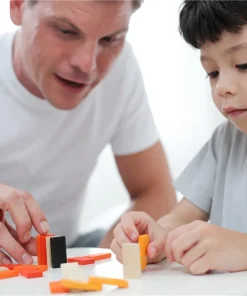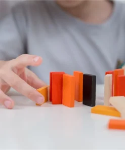 Construye una carrera de dominó con estos coloridos bloques. Crea una pista con tu imaginación y obsérvala derrumbarse. Los/as niños/as pueden aprender el concepto de causa-efecto con este conjunto de 22 bloques