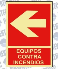 Señal de seguridad de socorro que nos indica la dirección ( hacia la izquierda ) de la existencia de un carro con extintor para ser utilizado en situación de incendio.