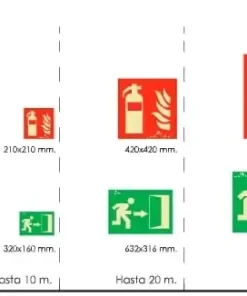 Señal de seguridad de socorro que nos indica la dirección ( hacia la izquierda ) de la existencia de un carro con extintor para ser utilizado en situación de incendio.