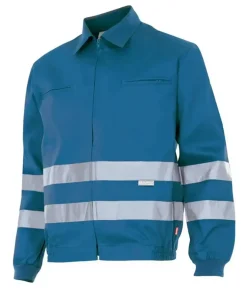 La cazadora reflectante trabajo modelo 154 de Velilla es una una cazadora de sarga ( poliéster-algodón ) en la que se le incorpora dos bandas reflectantes.