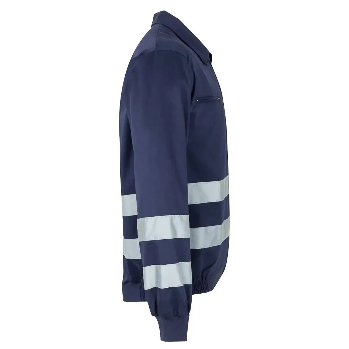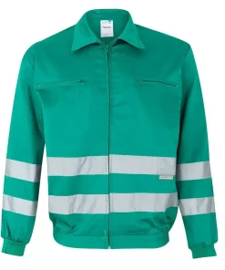 - Cazadora reflectante con dos bandas paralelas reflectantes en las dos caras de la prenda.