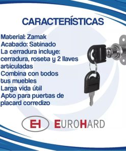 – La cerradura incluye: cerradura, roseta y 2 llaves articuladas