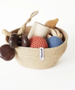 Para la fabricación de sus cestas y utilizan yute , una fibra vegetal que procede de la corteza de una raíz semejante a un planta y constituye una de las fibras naturales más utilizadas en el mundo, después del algodón. En Bangladesh le llaman la “fibra de oro”, porque es una de las principales fuentes de ingreso para miles de artesanas. El yute es 100% biodegradable y reciclable, tiene variaciones naturales del color que hace cada cesta única. Tenemos cestas de muchos tamaños y formas, pero todas comparten que están hechas a mano y de comercio justo. Son ideales para nuestros materiales gracias a su gran resistencia y baja flexibilidad, los niños disfrutan tener sus juguetes y materiales fácilmente accesibles de acuerdo con los principios Montessori, tener las cosas organizadas y clasificadas facilita que los niños aprendan a guardarlos por sí mismos. Las cestas son importantes para exhibir diversos materiales en escuelas y colegios, creando un ambiente Montessori.