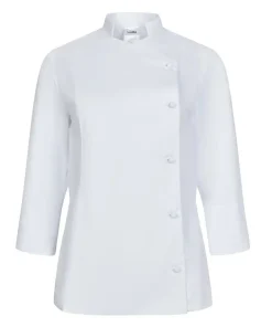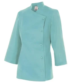 La chaqueta cocinera Melisa Velilla es una prenda clásica para ser utilizada en las cocinas y está diseñada con dos filas de botones.