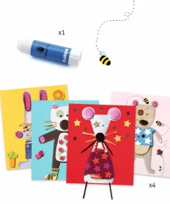• Incluye: 4 láminas de cartón grueso (21×28 cm), 4 sobres que contienen las partes para un collage en cada cuadro, una barra de pegamento y una guía.