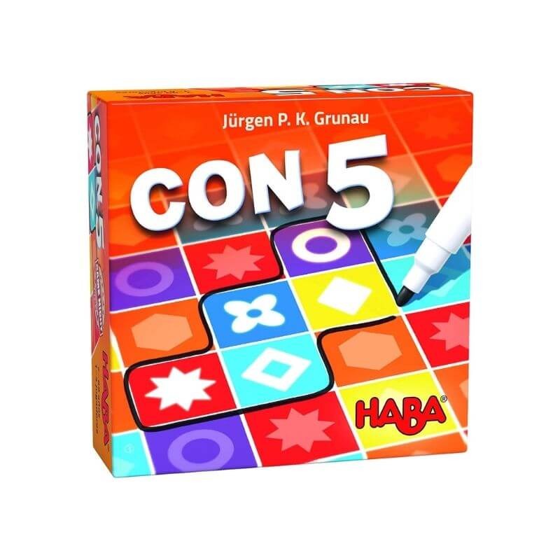 Uno lanza los 5 dados y todos buscamos al mismo tiempo hasta 5 figuras de CON5 en el tablero y las marcamos con el rotulador. Las figuras deben corresponderse con todos los símbolos que han salido en los dados.