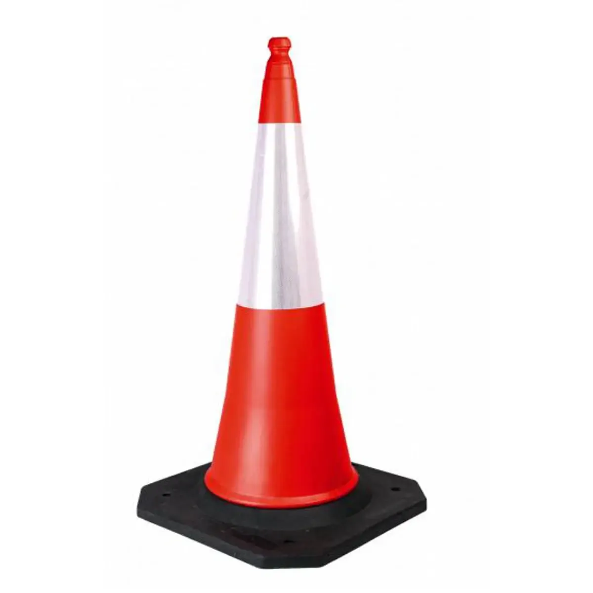 Cono de tráfico de 1 metro de altura, fabricado en dos piezas ( cono + base de pvc ) ideal para delimitar zonas viales, de trabajo, gestión de tráfico, seguridad peatonal, zonas de aparcamiento o de entretenimiento.