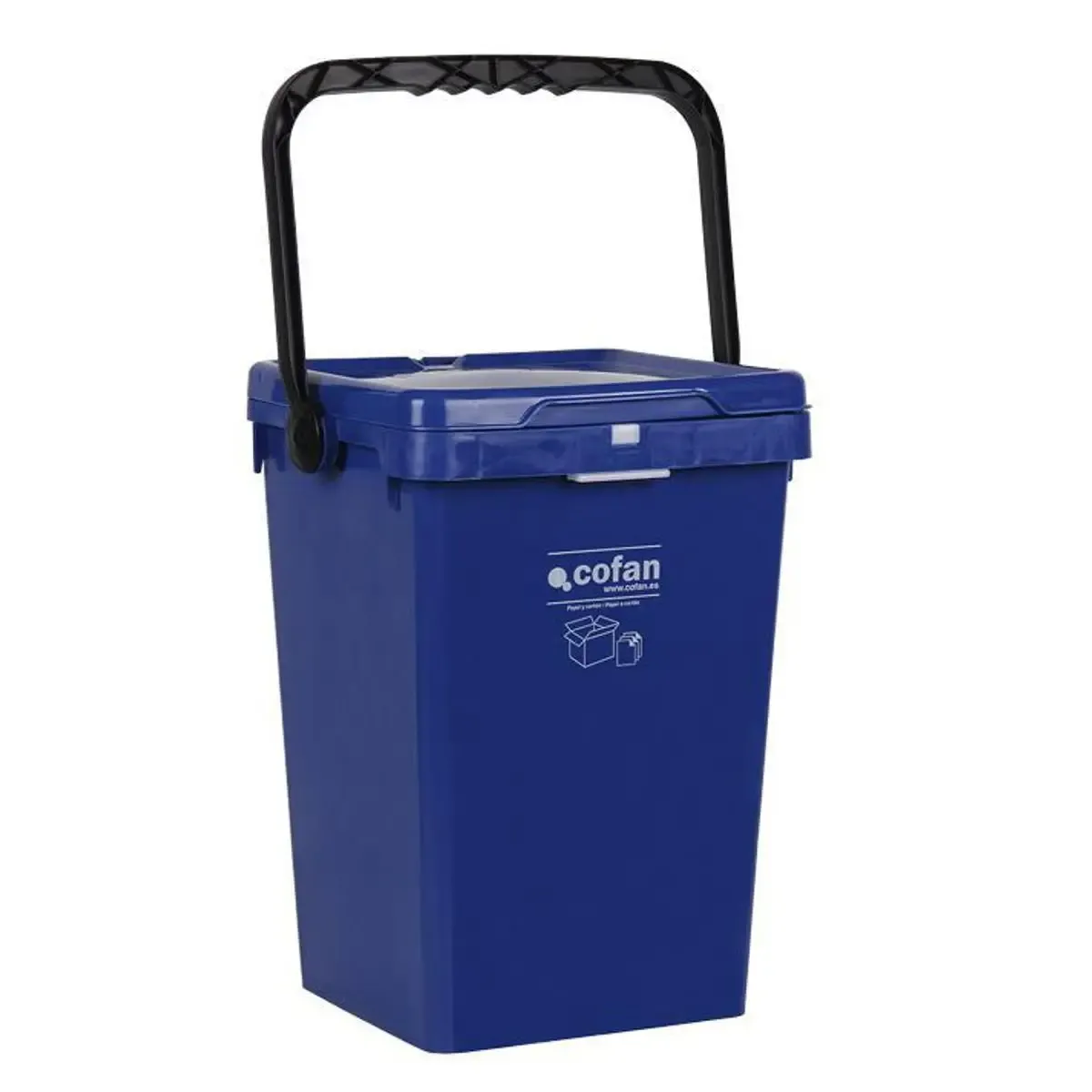 Contenedor para papel y cartón de la marca Cofan y con una capacidad de 25 litros con color azul para realizar una gestión sostenible de desechos.