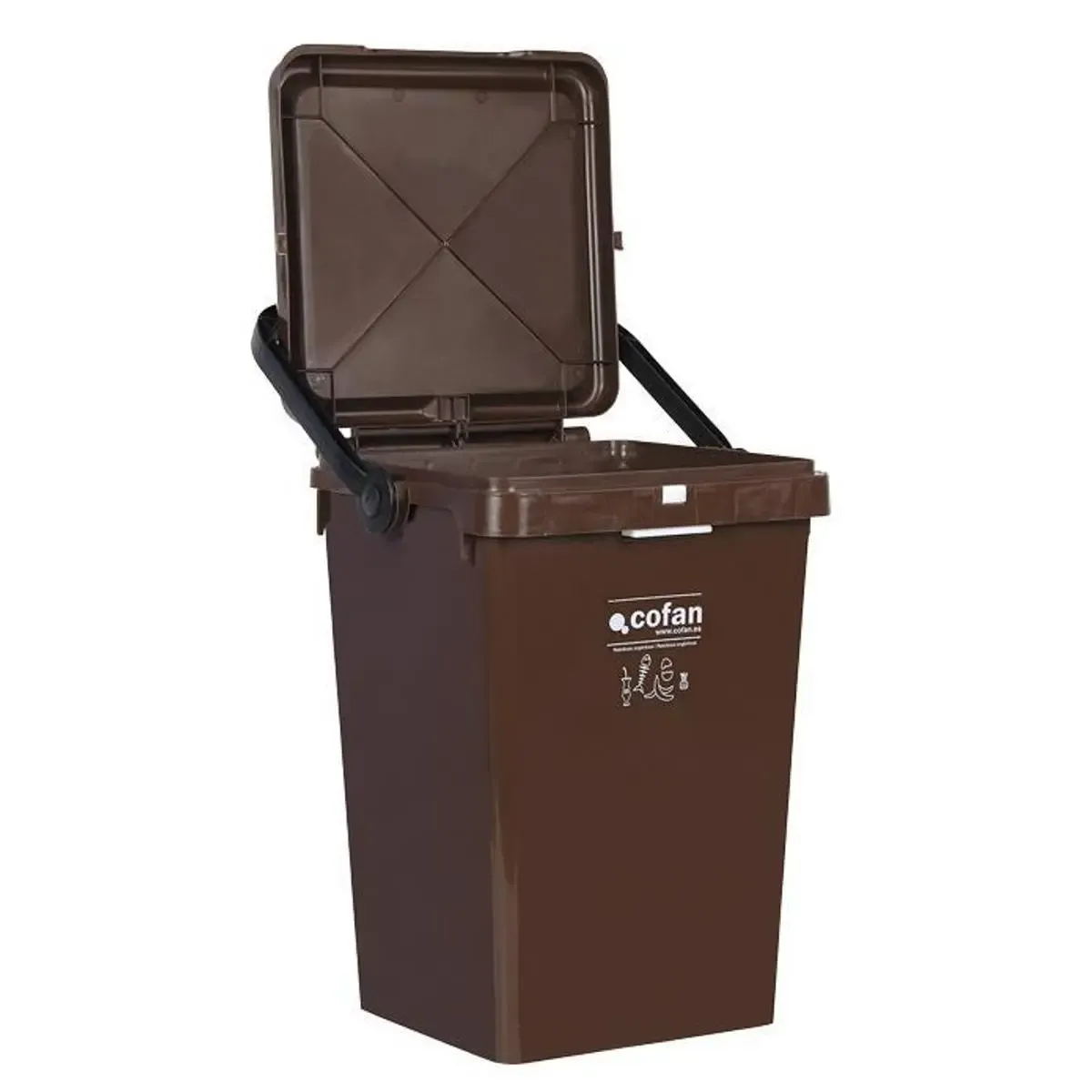 Contenedor para residuos orgánicos de color marrón y con una capacidad de 25 litros para tener una buena gestión sostenible de desechos.