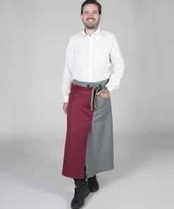 Delantal largo estilo francés con combinación de dos colores ideal para uniforme de camarero en bares, restaurantes y cafeterías, chefs o comercio en general.