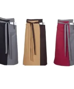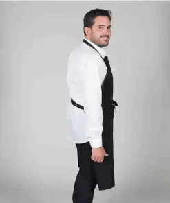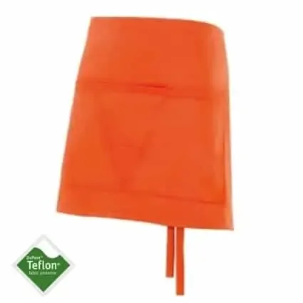 - Delantal corto con un amplio bolsillo en V para diferenciar tres compartimentos.