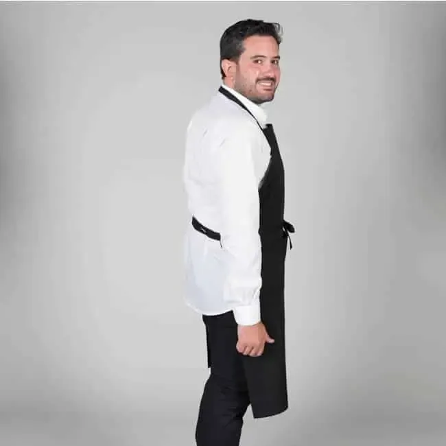 Delantales hostelería 161 del fabricante Uniformes Gary`s fabricado en sarga y utilizado habitualmente como uniforme de camarero en bares y restaurantes, cafeterías o comercio en general.