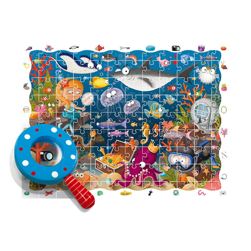 Descubre todos los detalles que esconde el puzzle de 108 piezas con una lupa mágica.