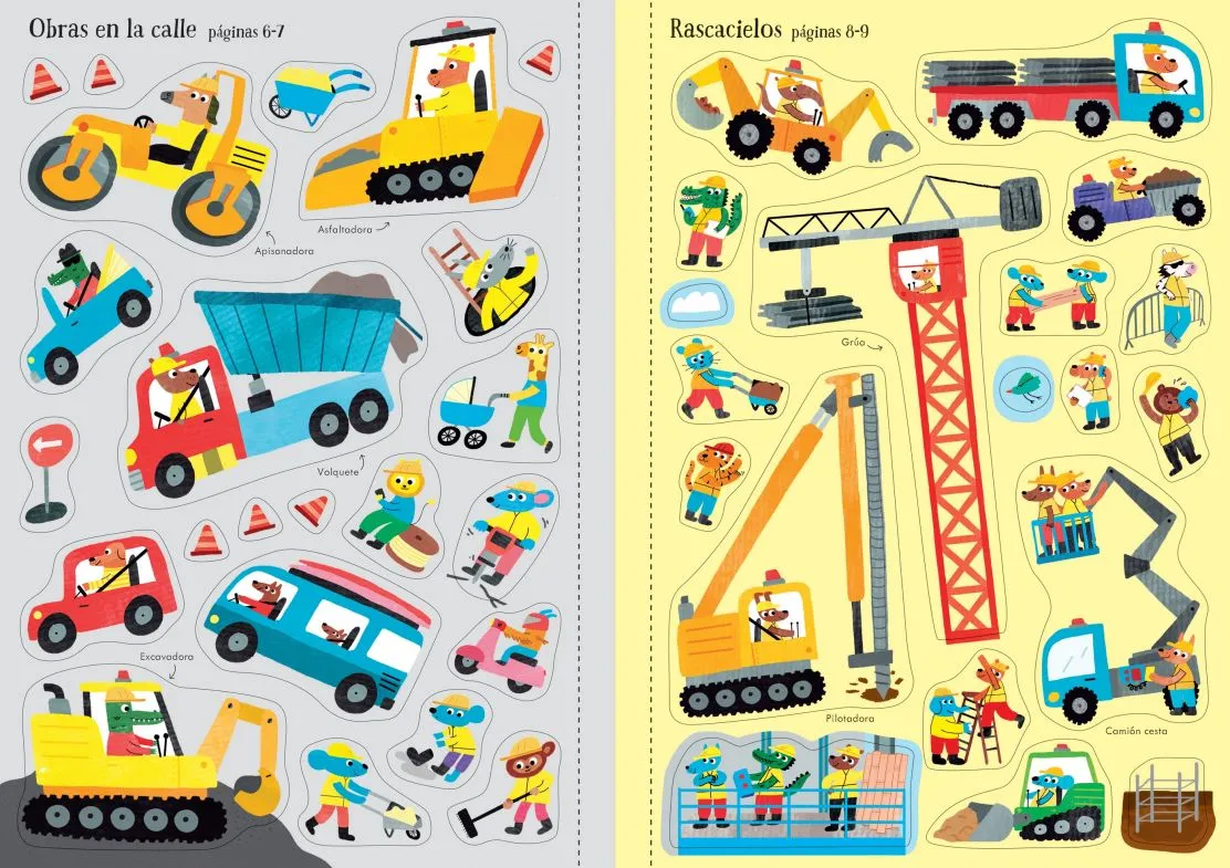En este libro los niños podrán ayudar a los animales que trabajan en la obra a construir una escuela, un parque infantil o una carretera, entre otros interesantes proyectos. Más de más de 170 pegatinas para dar vida a las escenas llenas de color, con excavadoras, camiones y todo el equipamiento necesario.