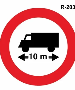 Las señales de prohibición y restricción tienen una forma circular y se mide según su diámetro. Dependiendo del lugar en donde se ubica la señal es recomendable un tamaño u otro.