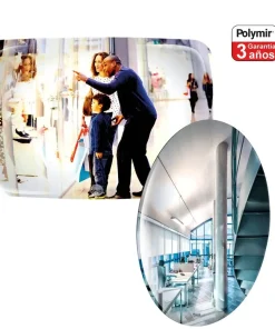 Estos espejos de vigilancia son bastantes habituales en interiores de comercios para poder vigilar desde cualquier ángulo posibles hurtos, accidentes personales o desprendimientos de material en estanterías por ejemplo.