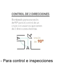 Espejo para esquinas 1/4 esfera con campo de visión de 90 grados pensado para instalarse en una intersección con 2 vías como pueden ser esquinas para obtener una mejor visibilidad desde todos los ángulos, evitando puntos muertos.