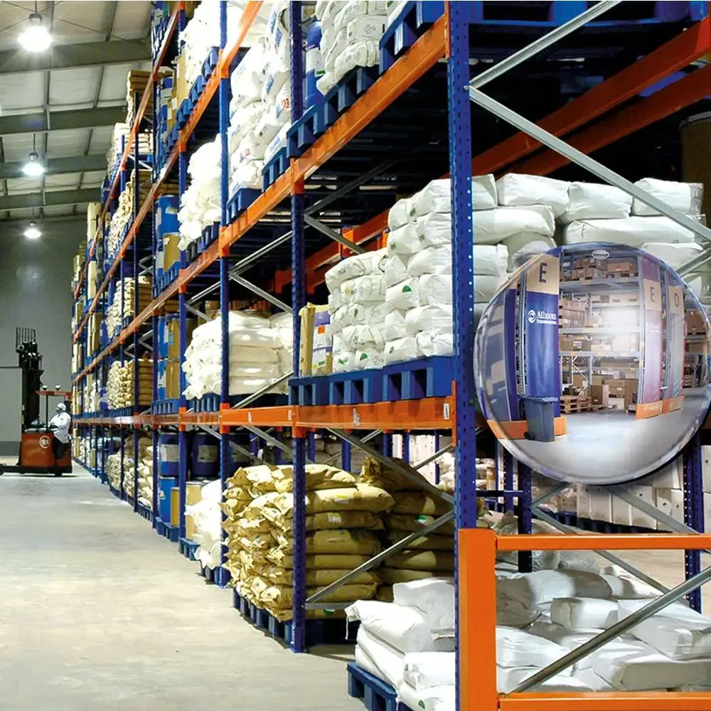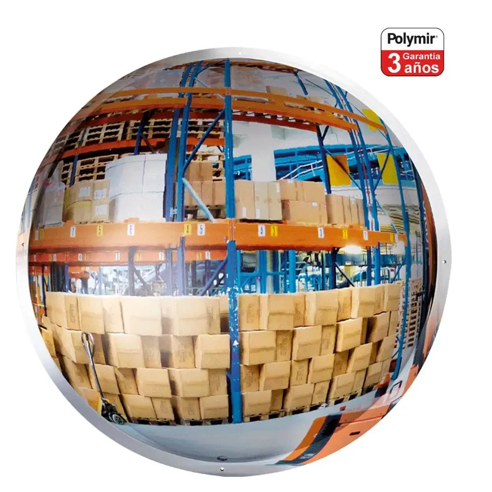Espejo vigilancia media esfera circulares en calidad polymir para fijación mural con 3 años de garantía pensado para interiores de centros logísticos o almacenes y de esta forma controlar el paso de carretillas o personas que circulan en pasos de tránsito de vehículos a fin de evitar accidentes.