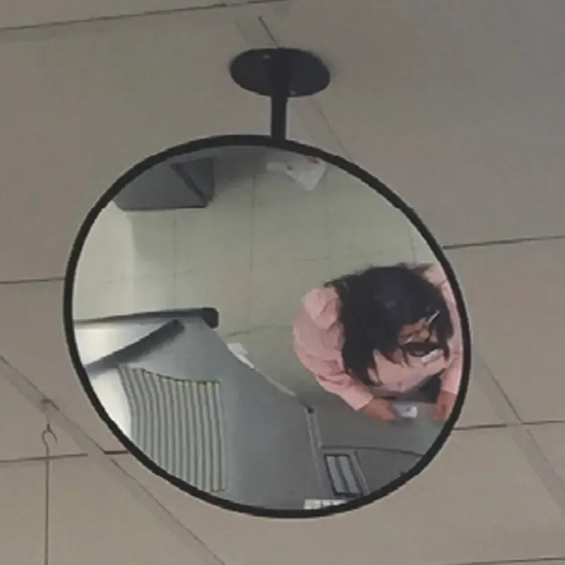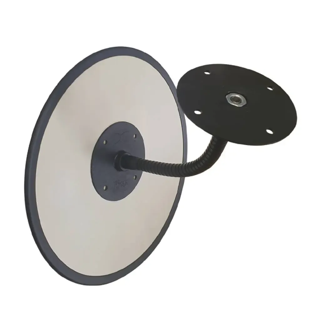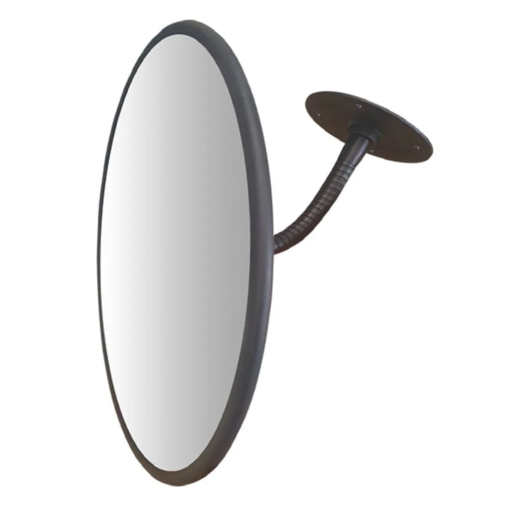 Este espejo de vigilancia está pensado para instalarse en el techo o en una pared y con un tubo flexible para dar un ángulo apropiado y ayudar al personal de la empresa a controlar zonas o espacios desde un punto fijo.