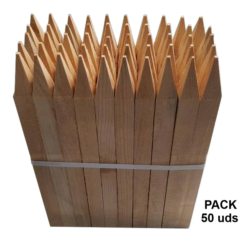 Estacas de madera de pino: robustas y duraderas, estas estacas naturales son ideales para proyectos de jardinería, construcción y señalización. Su madera de pino de alta calidad brinda resistencia y estabilidad