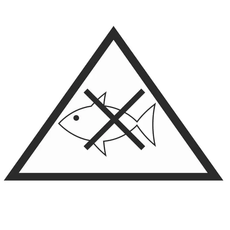 Etiquetas otros contaminantes al mar de clase 9 con dos tamaños diferentes y varios materiales como vinilo adhesivo, poliestireno o aluminio con el objetivo de informar a las personas del tipo de mercancía peligrosa que se está transportando.