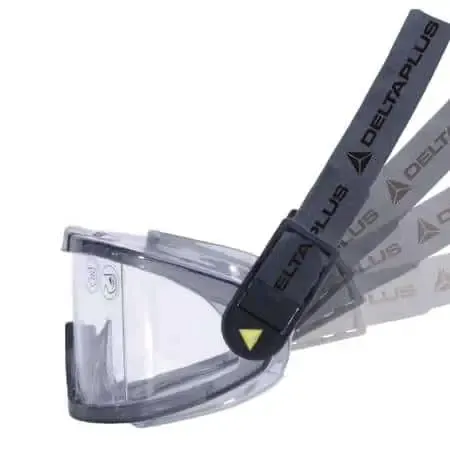 - Gafas panorámicas de policarbonato incoloro de montura integral.