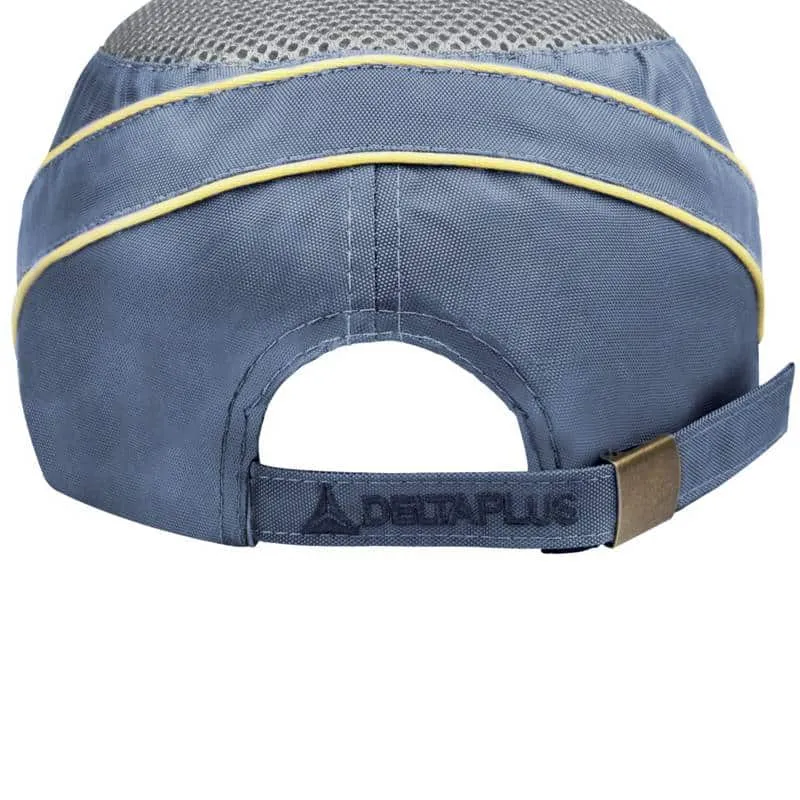 Gorra antigolpes Delta Plus con una visera más corta de lo habitual para facilitar la visión del usuario en aquellos trabajos en los que necesitan de forma habitual mirar hacia arriba.