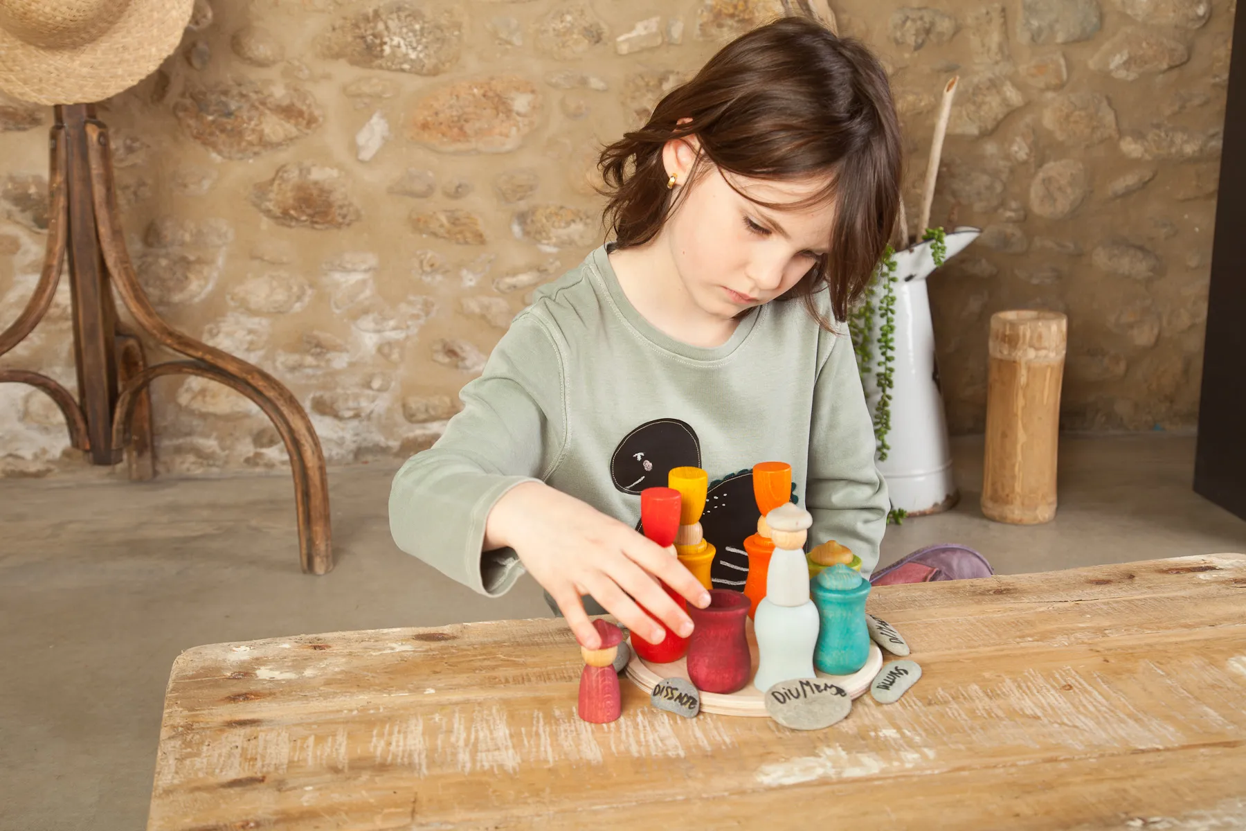 Las piezas deben invitar a conectar con sus deseos internos. Es por eso que ofrecemos materiales sin instrucciones ni límites. Entendemos que nuestro deber como padres es proteger los momentos de juego de nuestras hijas e hijos sin interferir, solo observando y estando presentes. De ahí que nuestro lema sea «Be free, play open!, ¡vive libre, juega abierto!”.