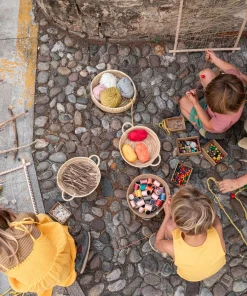 Un conjunto compuesto por 4 palos con pequeñas hendiduras, e hilo de cáñamo, perfecto para montajes de temporada o cualquier otra actividad de exposición creativa.