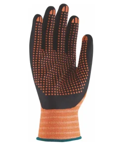 La palma está recubierto de foam con una buena resistencia ante la abrasión, el dorso de textil transpirable para evitar la sudoración y en la palma hay unos pequeños puntos de nitrilo que le dan una propiedad antideslizante a superficies resbaladizas.