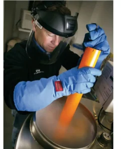 Guantes criogénicos con puño para trabajos con manipulación de nitrógeno líquido testados para resistir hasta -160ºC y con un nivel máximo de resistencia al frío convectivo ( Nivel 4 )